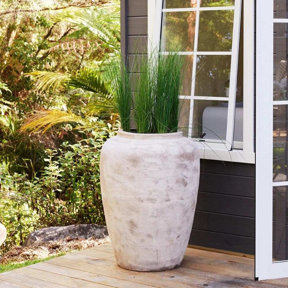 The Olive Jar pairs Mediterranean tradition with a modern twist. A refined collar and upright shape give this pot a fresh silhouette, while the option to cluster two complementary sizes offers versatile styling. Thoughtfully designed to fit standard 300mm and 400mm plastic pots, it allows for easy plant swaps with no mess.